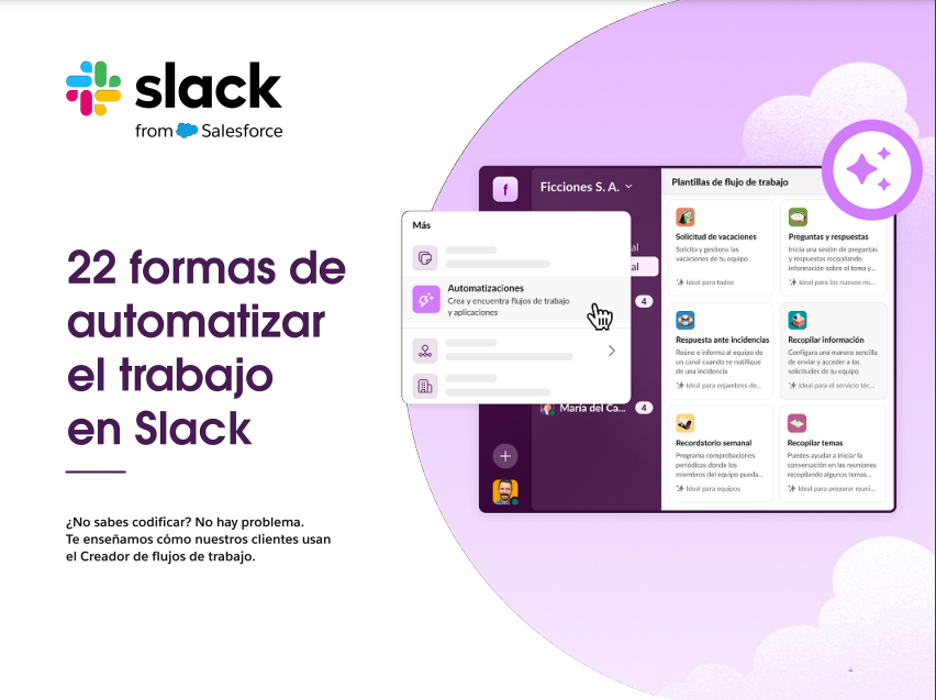 No estamos hablando del espacio de trabajo del futuro, todo esto es una realidad gracias a Slack. El Creador de flujos de trabajo es una herramienta sin código que te permite optimizar procesos, eliminar errores manuales, reducir los cambios entre aplicaciones y liberar recursos valiosos para