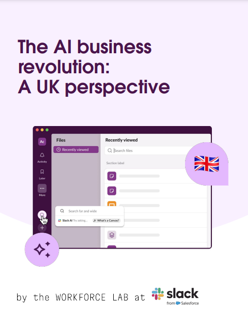 For British business leaders, this eBook serves as a guide to identifying key areas for AI implementation and in particular, Slack application, to help you stay competitive in a rapidly evolving landscape.