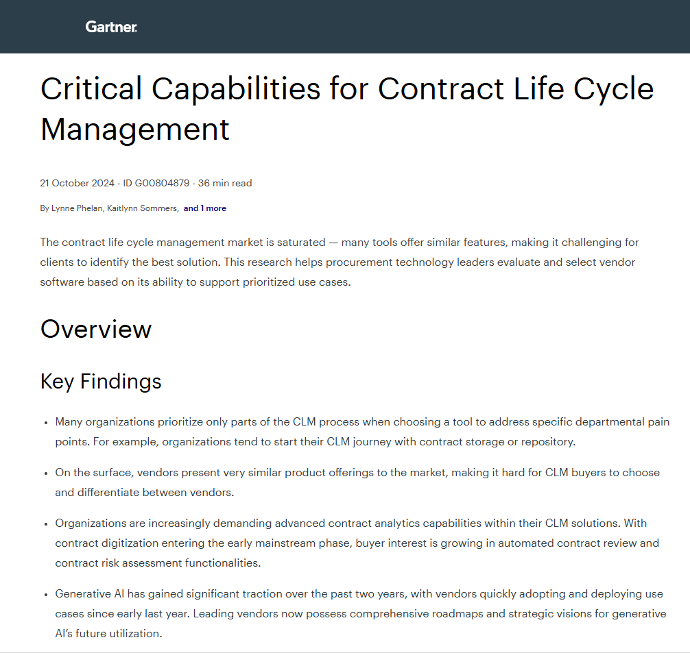 2024 Gartner Critical Capabilities for Contract Life Cycle Management