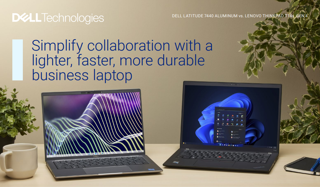 The Latitude 7440 ALU is smaller and more portable than the Lenovo ThinkPad T14s Gen 4. The premium design includes a larger touchpad for mouse-free work and durability to support on-the-go professionals.
