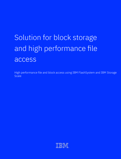 IBM SAN-attached storage virtualization product, IBM FlashSystem® and older IBM Spectrum Virtualize™ and IBM Storwize products, offers dependable data availability up to 99.999% and can handle the massive amount of block storage data packed with software features such as data tiering, real-time compression, thin provisioning, safeguarded copy, and so on. This white paper describes a high performance file and block access solution that uses IBM Storage Virtualize along with IBM Storage Scale to deliver file interface for any type of workload such as traditional workload (SAP, ERP, database), Cloud Era workloads (web content, web apps, social media) or new workload (Genome analysis, IoT).