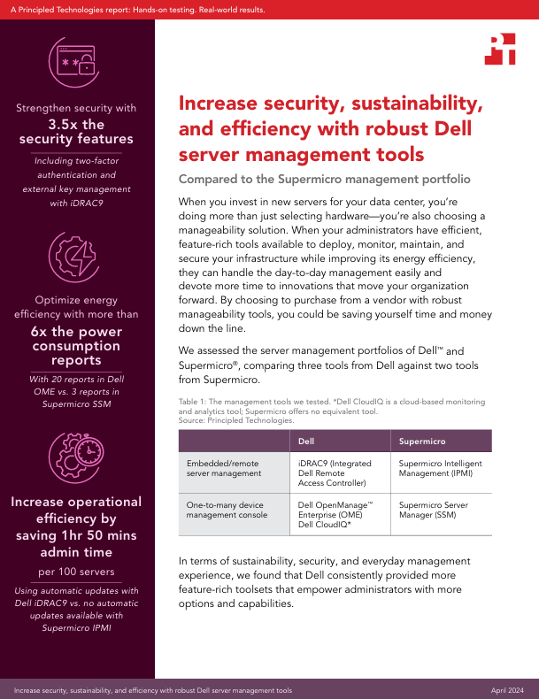 We assessed the server management portfolios of Dell™ and Supermicro®, comparing three tools from Dell against two tools from Supermicro.