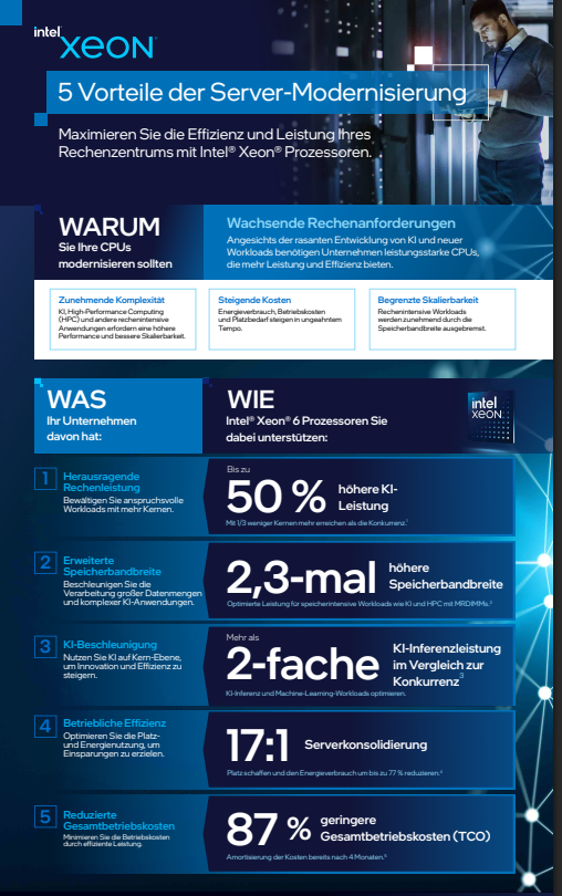Die Leistung variiert je nach Nutzung, Konfiguration und anderen Faktoren. Weitere Informationen erhalten Sie unter www.intel.de/benchmarks.