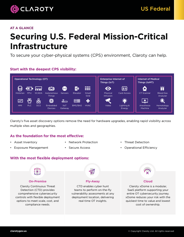 Claroty Continuous Threat Detection (CTD) provides comprehensive cybersecurity controls with flexible deployment options to meet scale, cost, and compliance needs.