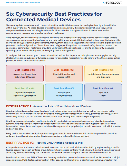 Six Critical Cybersecurity Practices for Protecting Connected Medical Devices