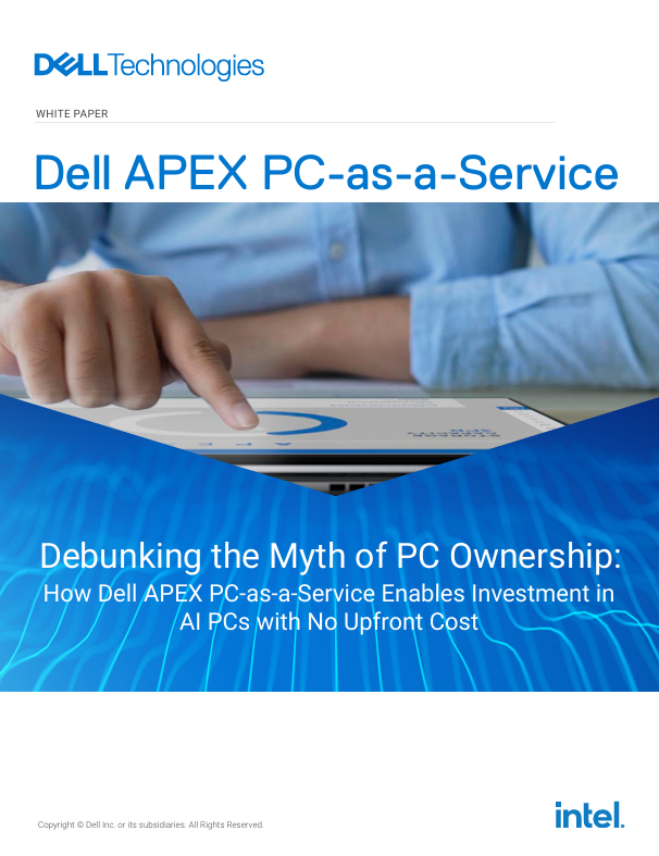 The traditional model of PC ownership, with its high upfront costs and complex asset management, often hinders companies from accessing cutting-edge technology. However, Dell APEX PC-as-a-Service (PCaaS)* is changing this standard by offering a solution that enables businesses to invest in Dell AI PCs powered by Intel® CoreTM Ultra processors, simplify IT and refresh technology sustainably without the burden of upfront costs.