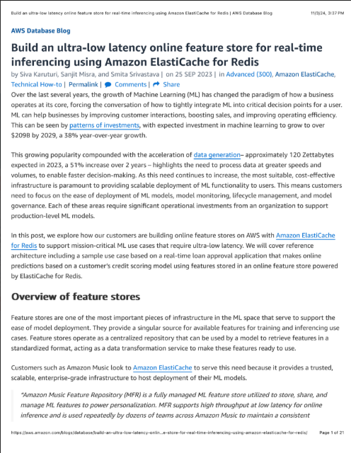 This growing popularity compounded with the acceleration of data generation– approximately 120 Zettabytes expected in 2023, a 51% increase over 2 years – highlights the need to process data at greater speeds and volumes, to enable faster decision-making. As this need continues to increase, the most suitable, cost-effective infrastructure is paramount to providing scalable deployment of ML functionality to users. This means customers need to focus on the ease of deployment of ML models, model monitoring, lifecycle management, and model governance. Each of these areas require significant operational investments from an organization to support production-level ML models.