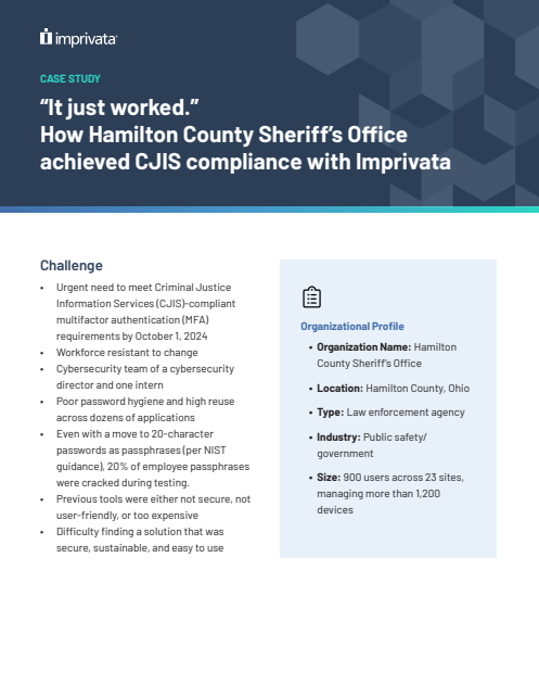 When Jacqueline Ray took on the role of Director of Cybersecurity at the Hamilton County Sheriff’s Office, she had to build the agency’s first-ever cybersecurity program from scratch. The FBI’s Criminal Justice Information Services (CJIS) regulations required all agencies to have multifactor authentication (MFA) implemented by October 1, 2024, or risk being cut off from essential networks.