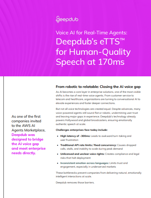 As AI becomes a core layer in enterprise solutions, one of the most visible shifts is the rise of real-time voice agents. From customer service to telecom and healthcare, organizations are turning to conversational AI to elevate experiences and foster deeper connections. But not all voice technologies are created equal. Despite advances, many voice-powered agents still sound flat or robotic, undermining user trust and leaving major gaps in experience. Deepdub’s technology already powers Hollywood and global broadcasters, ensuring emotionally