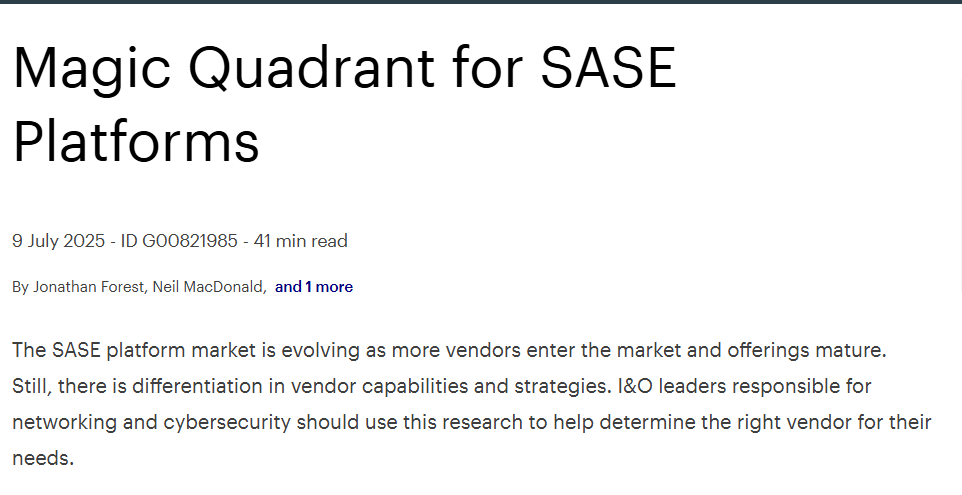 Secure access service edge (SASE) platforms deliver converged network and security-as-a-service capabilities, such as software-defined WAN (SD-WAN) and secure access to the web, cloud services and private applications regardless of the user’s location, the device used or where that application is hosted. These offerings primarily use a cloud-centric architecture delivered as a platform by one vendor.