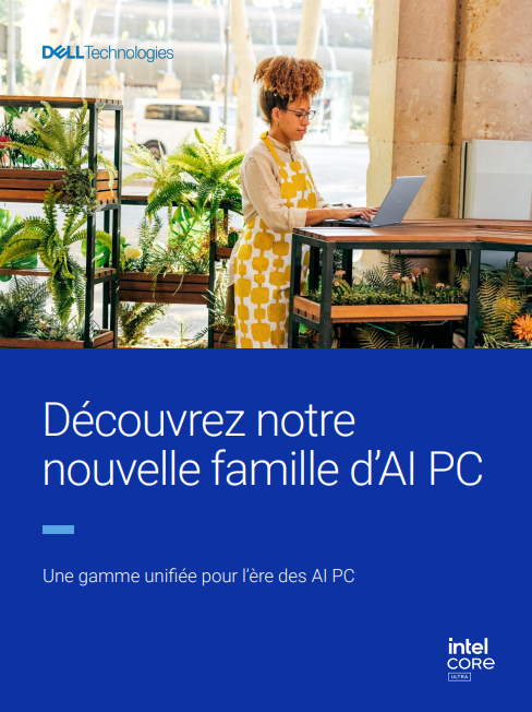Si notre emblématique marque Alienware continuera de servir les gamers sur PC, le reste de nos gammes de produits de PC, d’écrans et d’accessoires sera regroupé en trois catégories de produits simplifiées. Incluant d’élégants ordinateurs portables, des stations de travail puissantes et des ordinateurs de bureau polyvalents, tous équipés de processeurs Intel® CoreTM Ultra, la nouvelle gamme d’AI PC et d’accessoires de Dell vous permet de collaborer, de créer et de gagner en productivité, où que vous soyez.