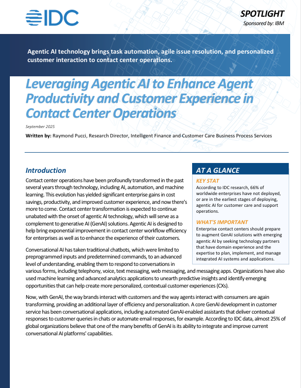Contact center operations have been profoundly transformed in the past several years through technology, including AI, automation, and machine learning. This evolution has yielded significant enterprise gains in cost savings, productivity, and improved customer experience, and now there’s more to come. Contact center transformation is expected to continue unabated with the onset of agentic AI technology, which will serve as a complement to generative AI (GenAI) solutions. Agentic AI is designed to help bring exponential improvement in contact center workflow efficiency for enterprises as well as to enhance the experience of their customers.