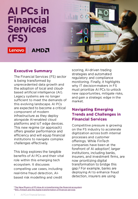 Traditional PCs often lack the computational power, scalability, and integration capabilities required to handle complex Al workloads or support real-time analytics. In the FS industry, where precision and speed are critical, these challenges can result in data inaccuracies, delayed transactions, and operational bottlenecks that impact revenue generation, risk mitigation, and customer trust.